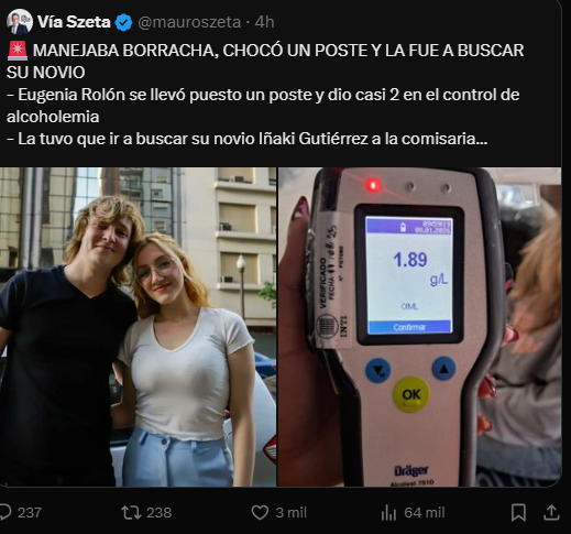 Según explicó Brancatelli al aire, el material expuesto abrió fuertes interrogantes sobre lo ocurrido y puso el foco en el entorno del influencer libertario, apodado “la Pepona”. En ese contexto, sostuvo que, por cómo se dio el accidente y la información que circuló, Rolón habría tenido 1,8 de alcohol en sangre, un dato que generó un inmediato revuelo político y mediático.