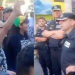 Policía venía reprimiendo pero un grupo de militantes de izquierda le dieron para que tenga 4