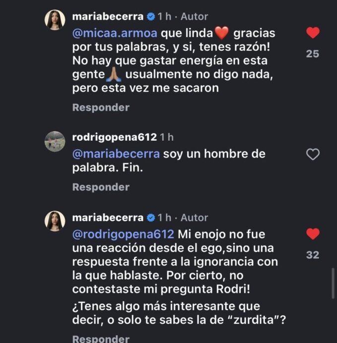 El cierre del cruce fue demoledor. Con una pregunta directa, María Becerra dejó expuestos a sus detractores, cuestionando qué hacen ellos por el país más allá de atacarla desde un teclado. Esa frase encendió aún más la discusión y provocó una ola de reacciones, apoyos y rechazos, consolidando el episodio como uno de los cruces más comentados del momento.